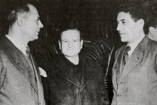 Nella foto I vertici della CGIL unitaria Oreste Lizzadri (PSI), Achille Grandi (DC) e Giuseppe Di Vittorio (PCI) nel 1945.